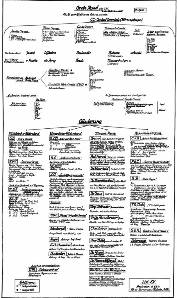 De laatste bijdrage is een diagram geproduceerd door de Duitse Sicherheitsdienst met een gedetailleerde beschrijving van de structuur van het Nederlandse verzet.