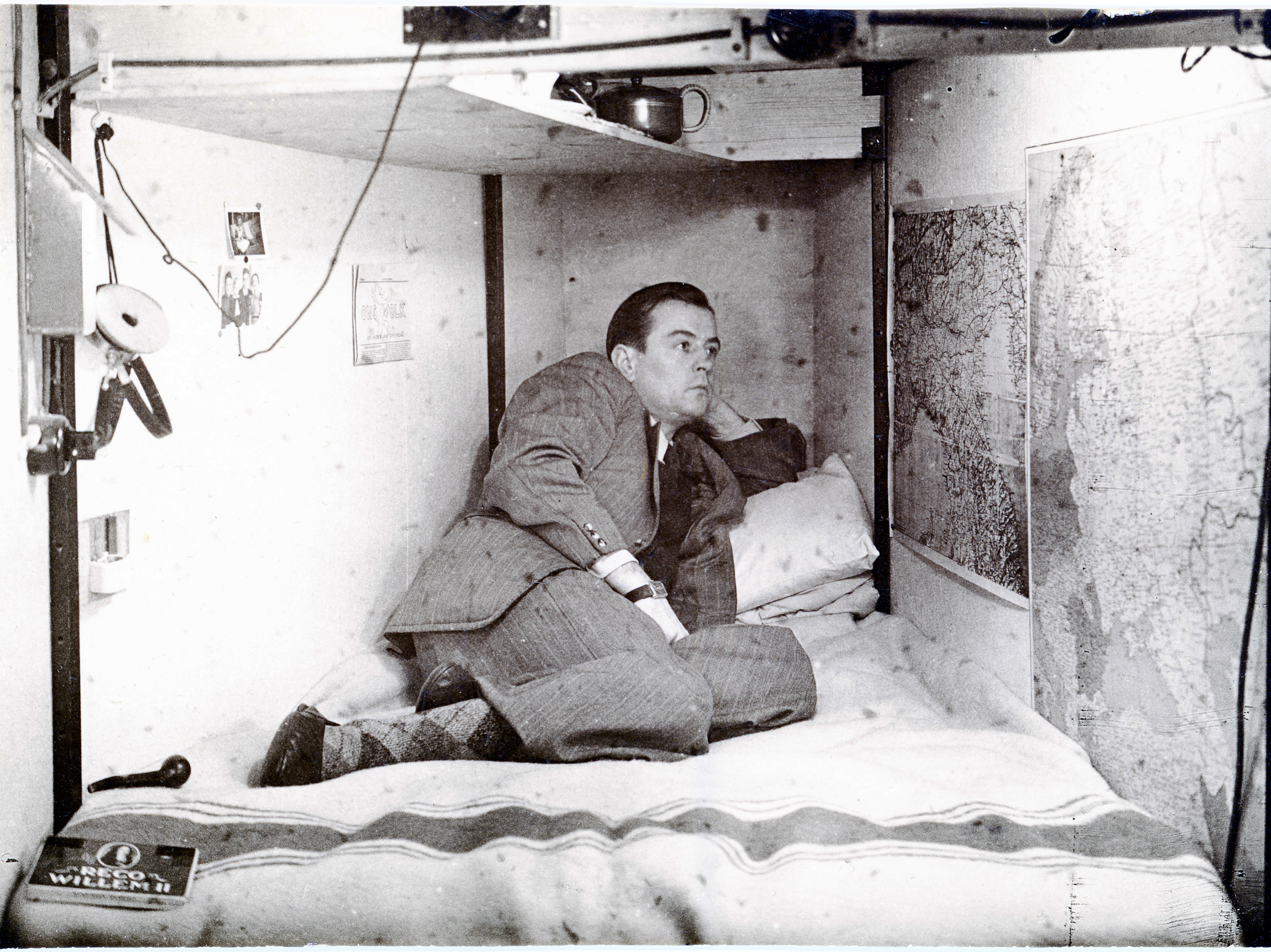 Jan Idema in zijn schuilplaats gebouwd in het magazijn van de meubelwinkel van de familie Hauer aan de Springweg, Utrecht.
